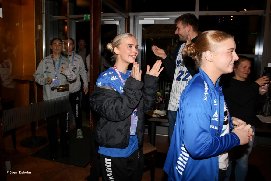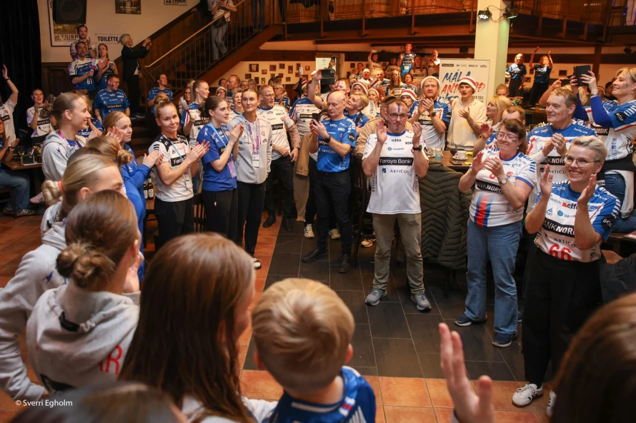 Tá føroysku kvinnurnar á landsliðnum høvdu fingið sær eitt uppiborið bað eftir sigurin á Paraguai í dag, gjørdu tær ikki mætari enn at koma inn á matstovuna FOH – Front of House – sum hevur verið basin hjá føroysku fjepparunum.