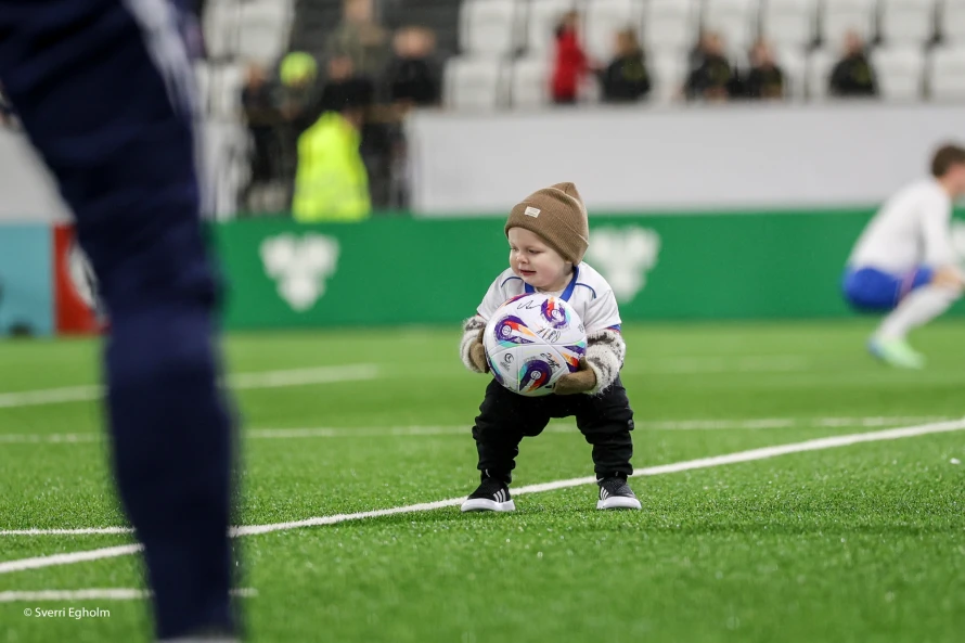 Tað var ein rørandi fagnaðarløta aftaná sigurin móti Kekkia í kvøld, tá børn hjá landsliðsleikarunum vóru lyft ella nærum slongd í favnin á pápum sínum.