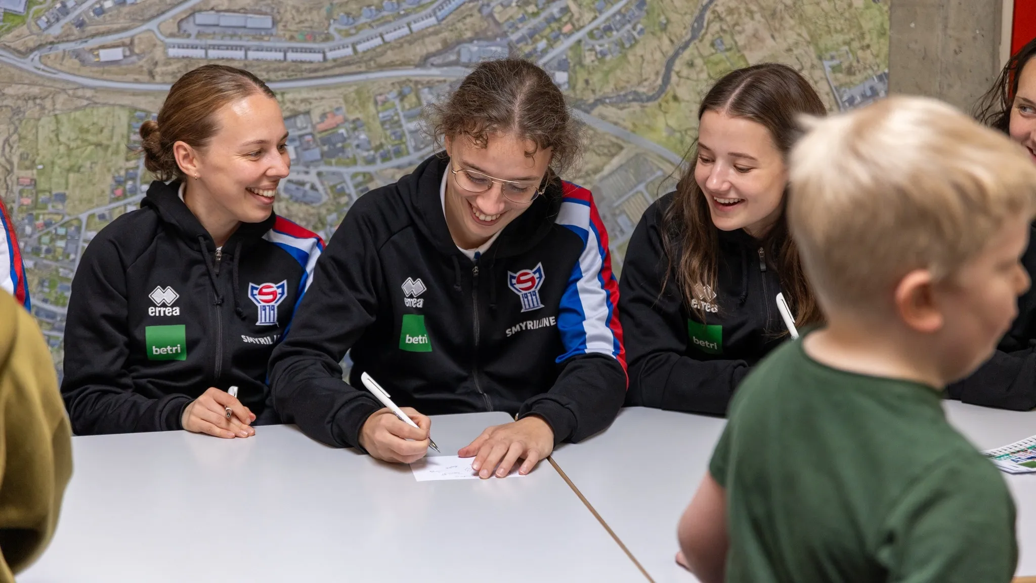 Myndir: Landsliðskvinnurnar vitjaðu til spæl, prát og autografar á Argjum