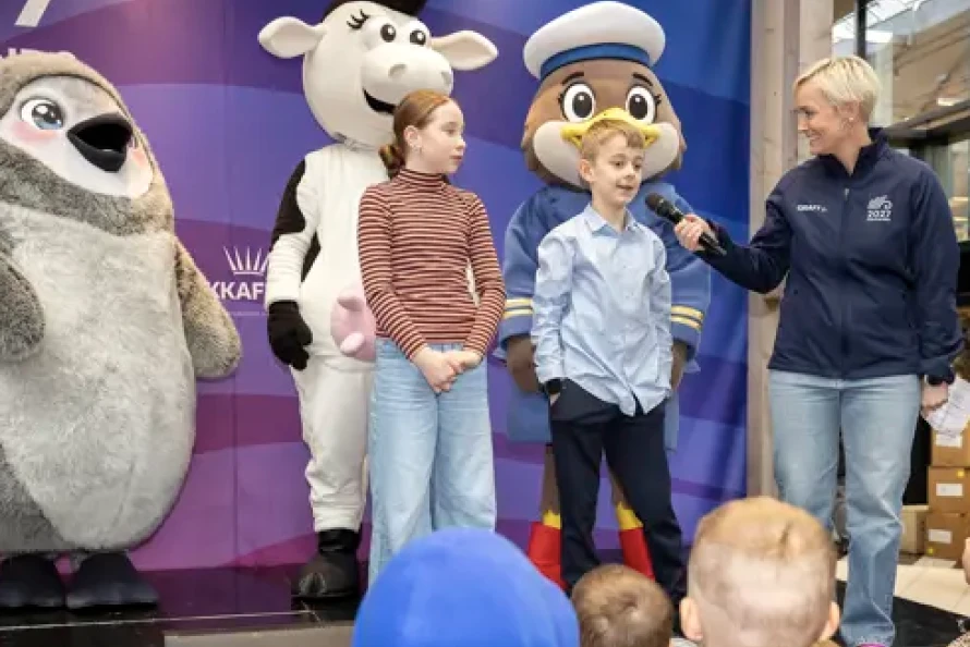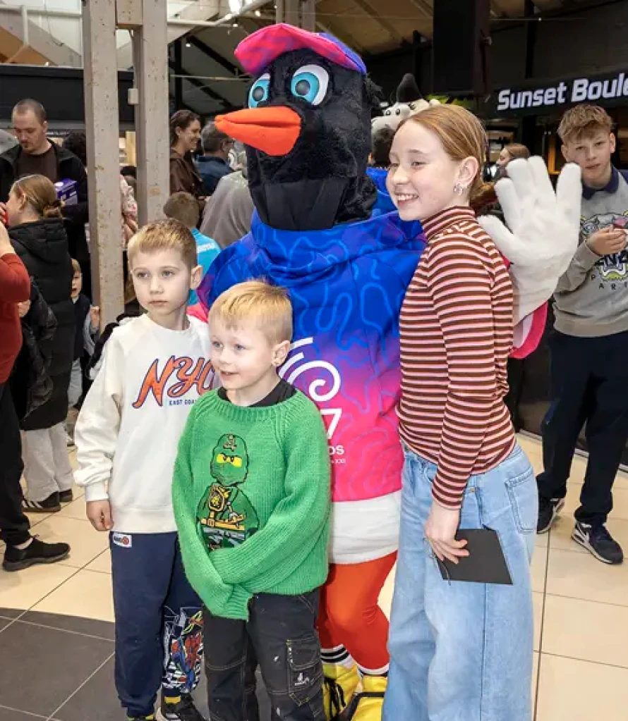 Klipp vísti seg fyri fyrstu ferð alment í gjár á torginum í SMS, har nógv fólk var komið saman at taka ímóti – og maskottarnir hjá samstørvunum hjá leikunum vóru eisini við.