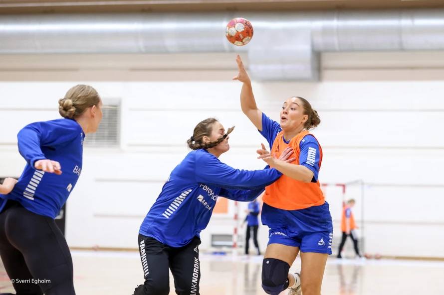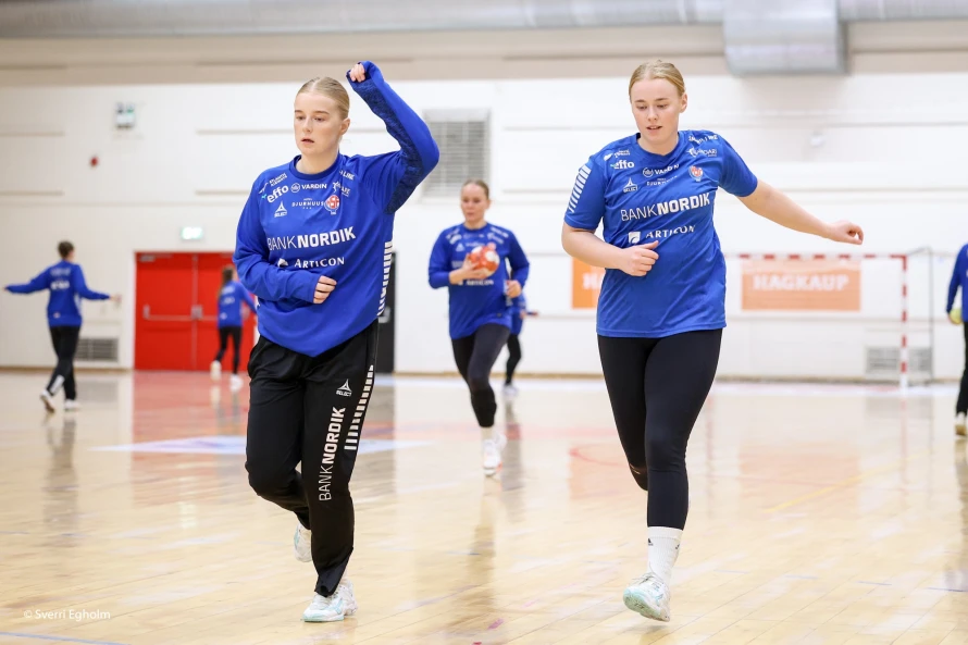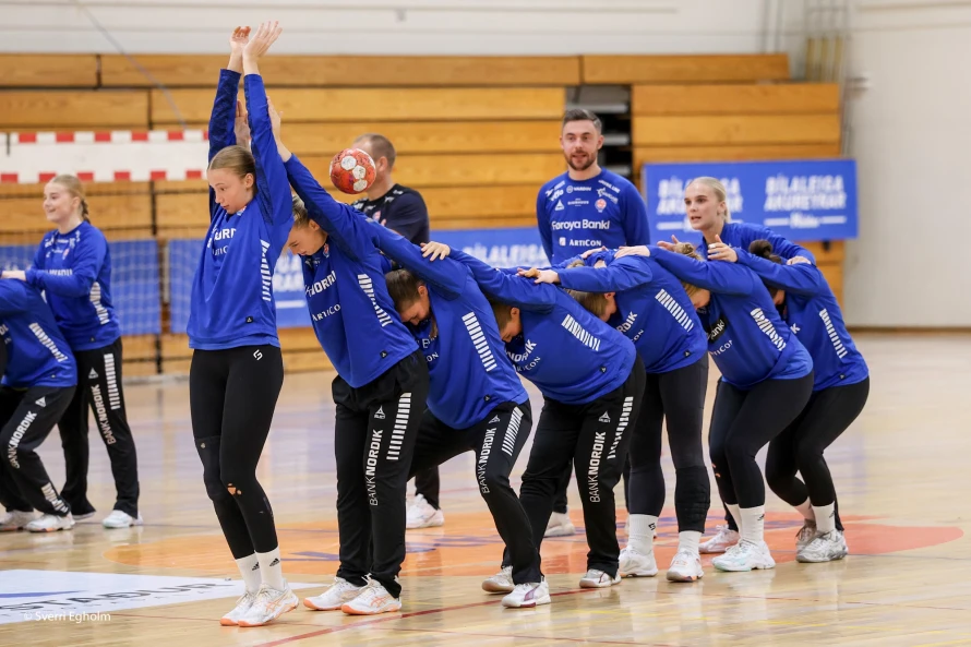 Hjá Føroyum vanui allar fult, fyriuttan Maria Pálsdóttir Nólsoy, sum er darvað av stoyti í skotøkslina. Hendan fekk bakspælarin úr Horsens fríggjakvøldið, og arbeitt verður við at fáa Mariu Pálsdóttir Nólsoy tøka.