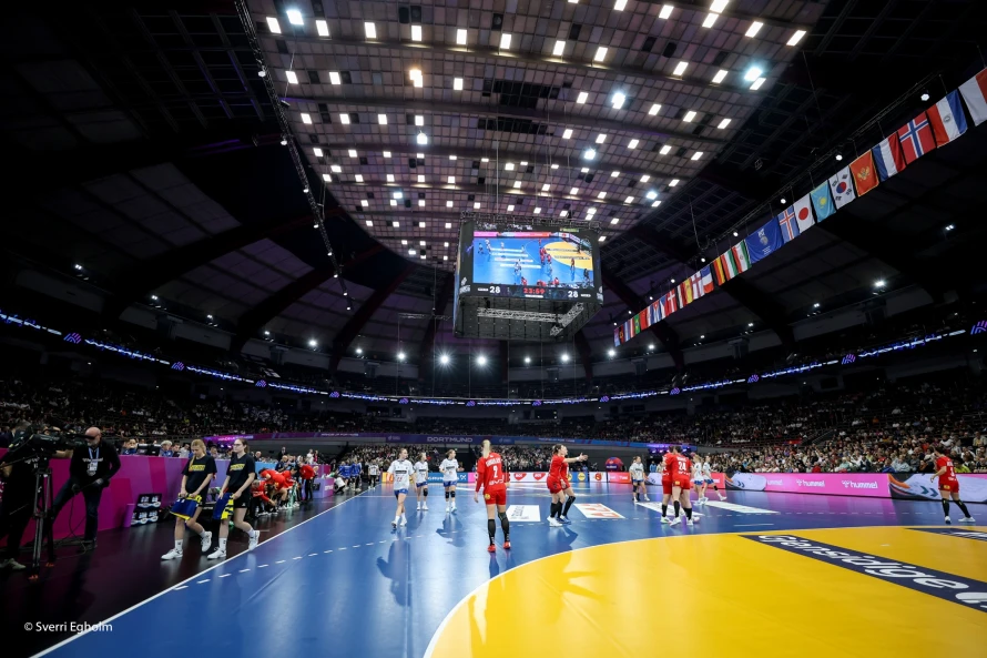 Sí myndir úr Westfalehalle í Dortmund, har Føroyar spældu javnt 31-31 móti Serbia.