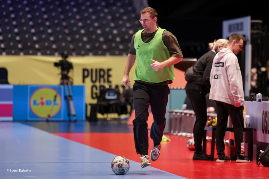 Talan er annars um gamla heimavøllin hjá fótbóltsfelagnum Stabæk. Sum vant var fótbóltur partur av upphitingini hjá hondbóltsmonnunum, men spælið var ikki til heiðurs fyri einum fótbóltsvølli: Einki mál, nógv skot framvið og bert hendinga fínar detaljur við bóltinum.
