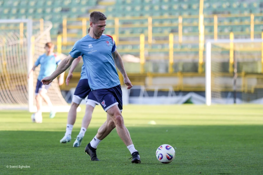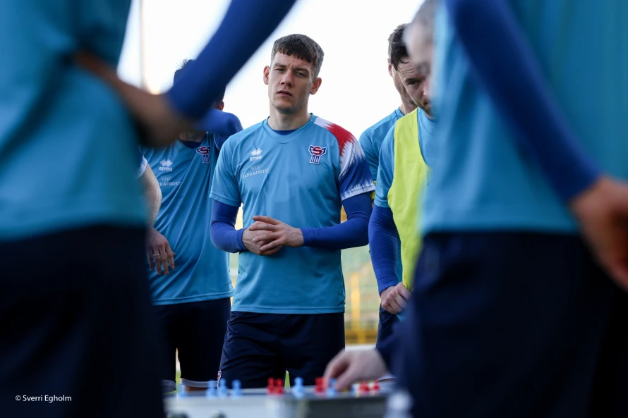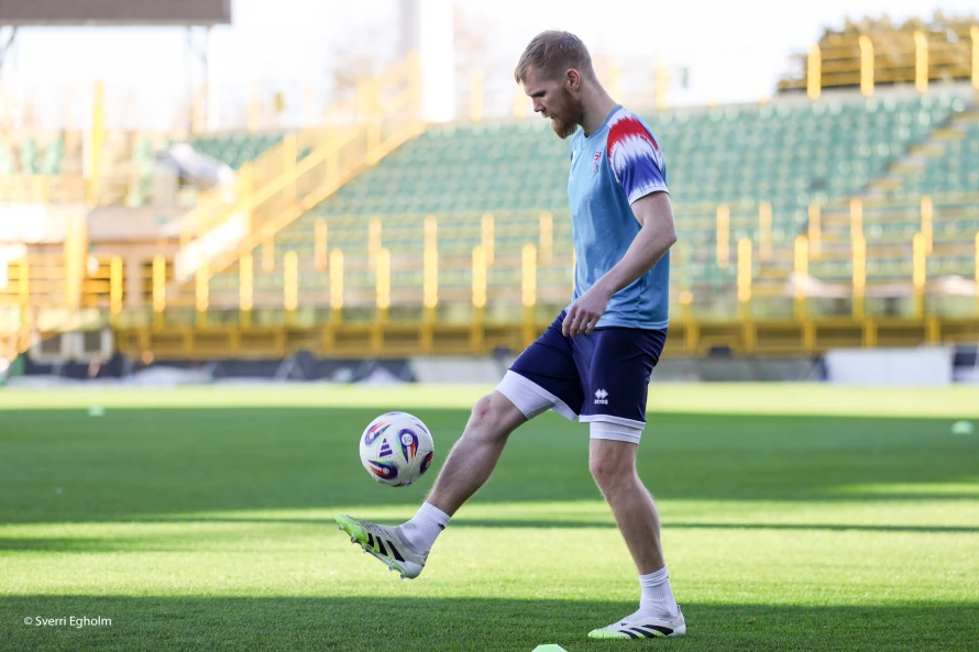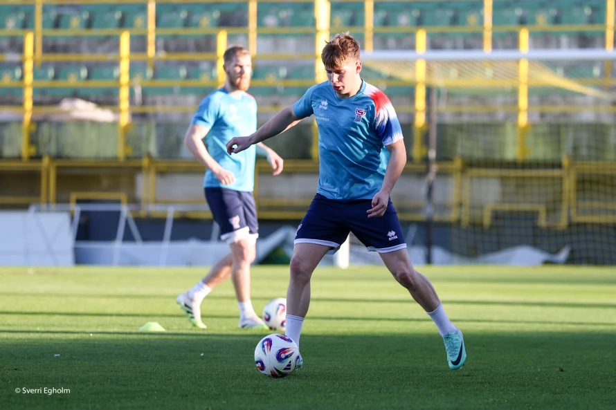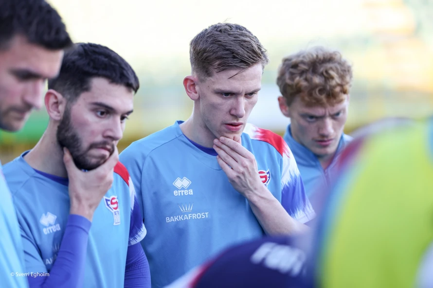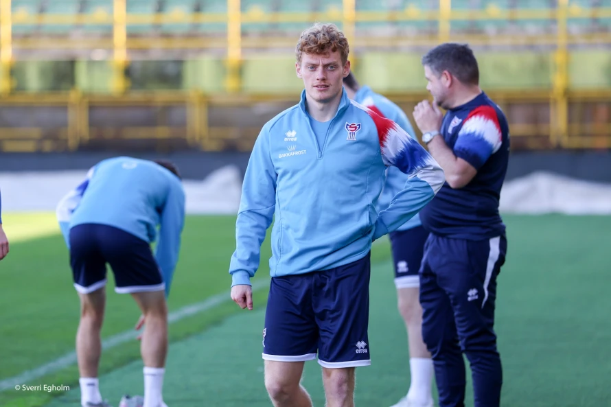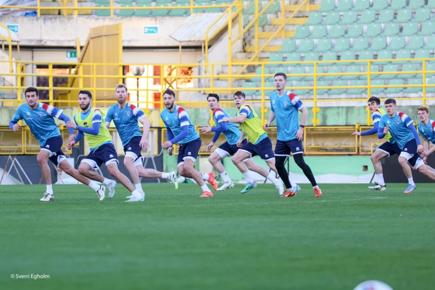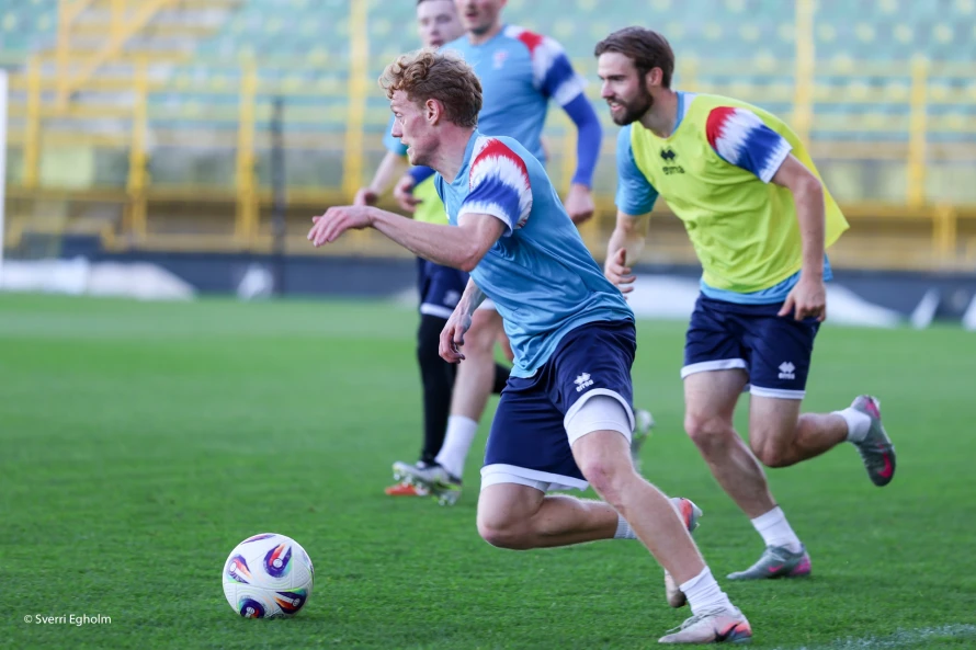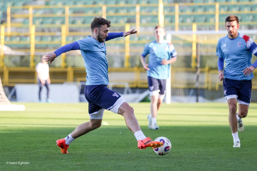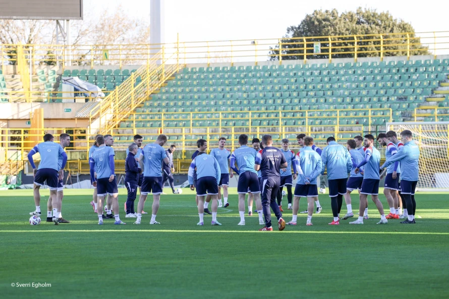 Vit vóru við til venjingina á Aldo Drosina leikvøllinum í Pula í vestur Kroatia, har dysturin verður spældur klokkan 17.