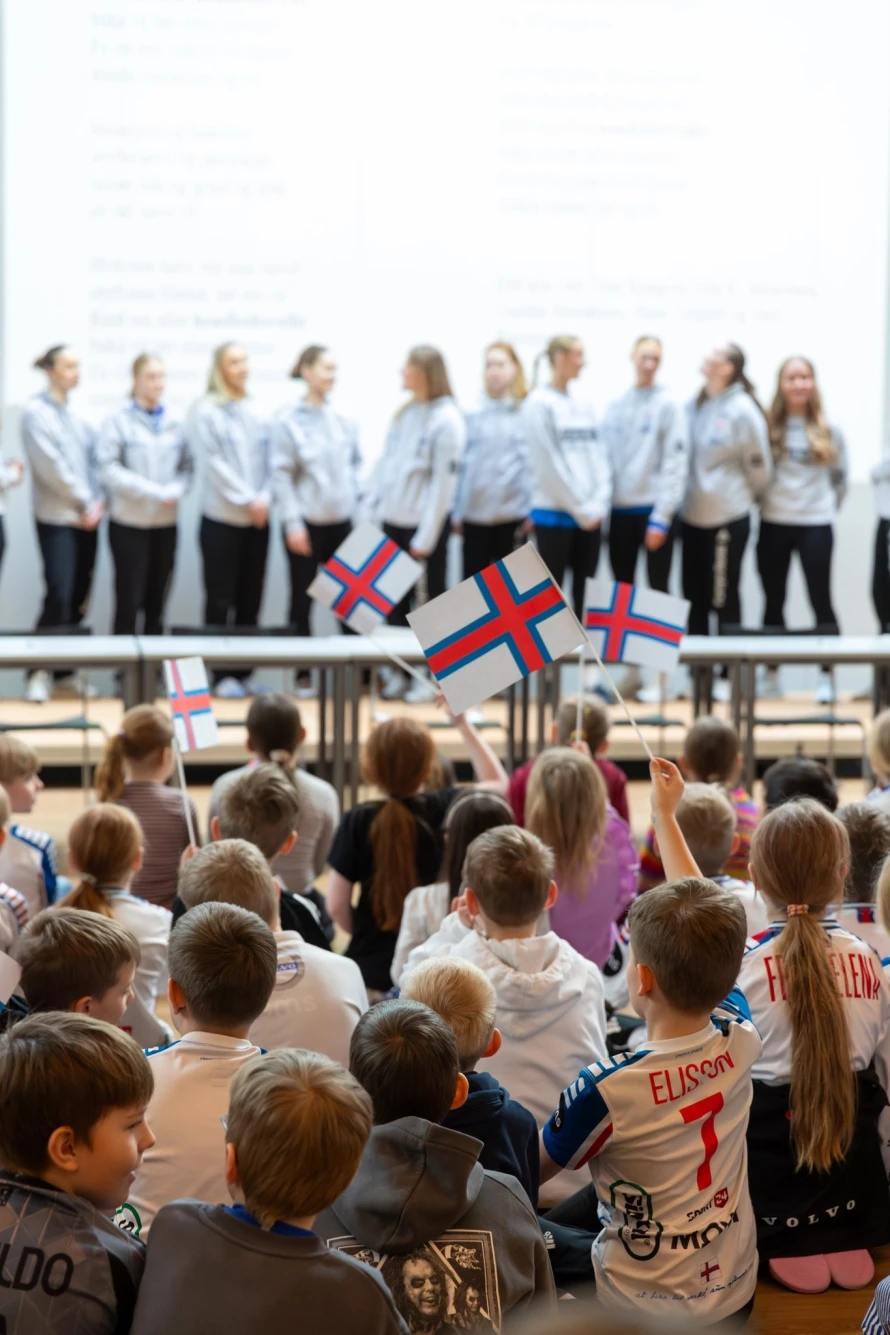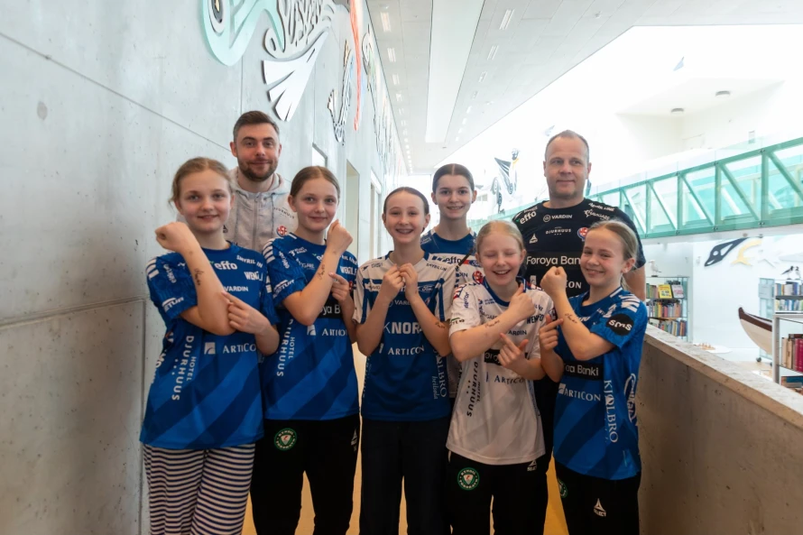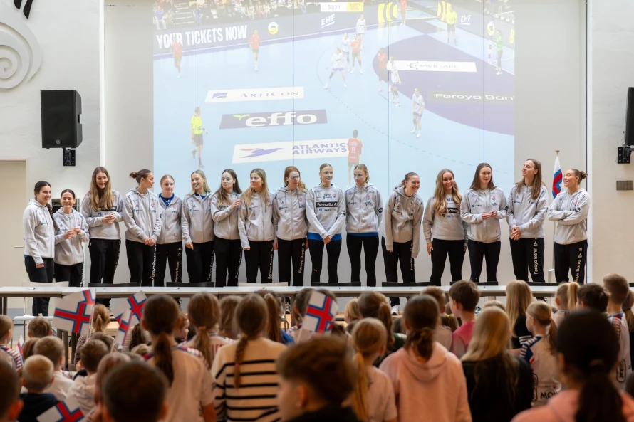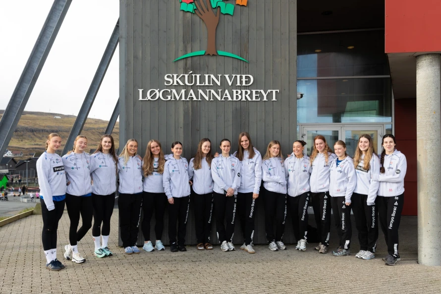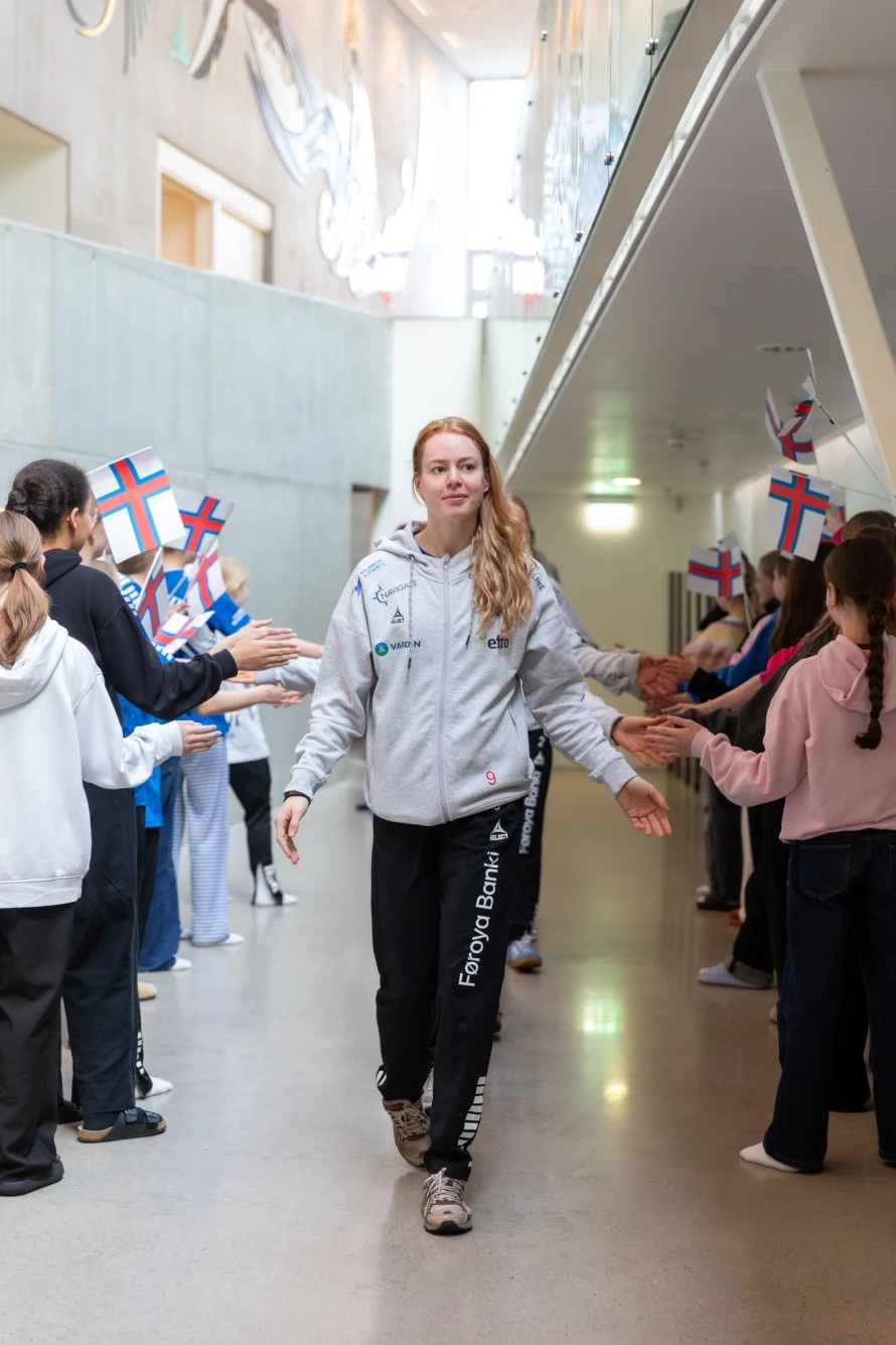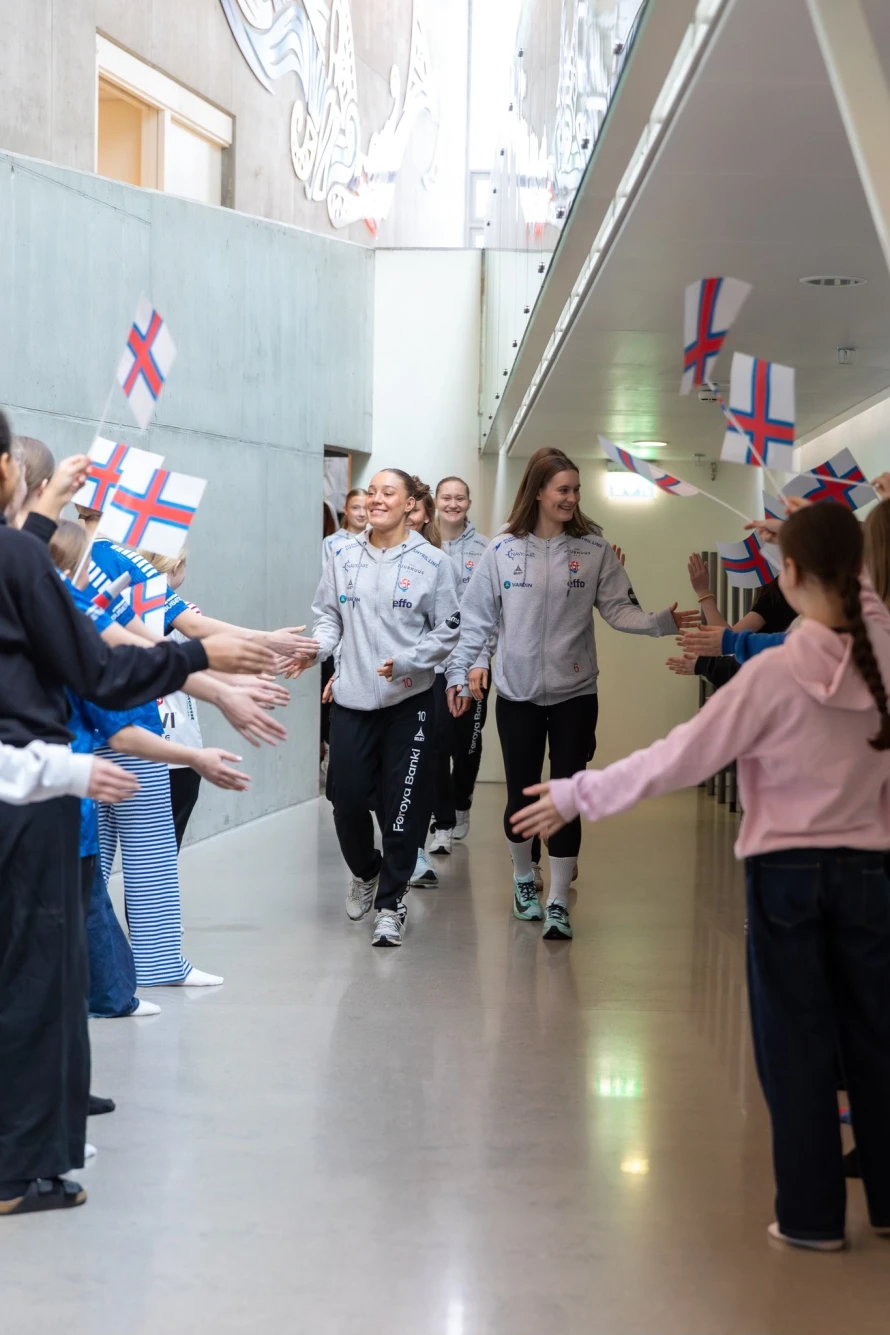 Á frídegnum hjá føroysku hondbóltskvinnunum í hesum landsliðsvindeyganum, vitjaðu tær ein fólkaskúla í Hoyvík, har fleiri teirra hava slitið sínar barnaskógvar.