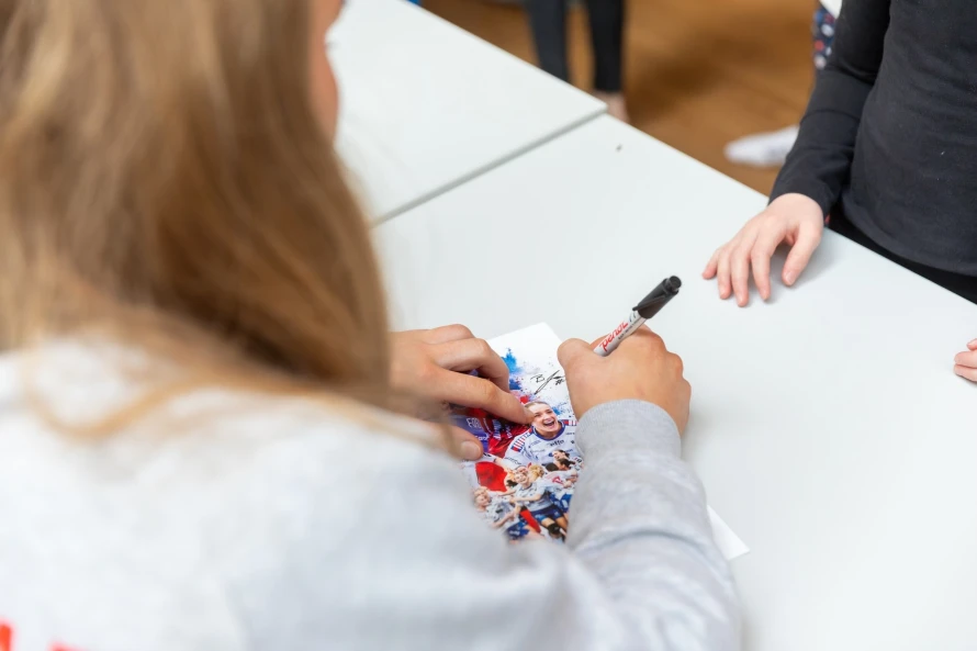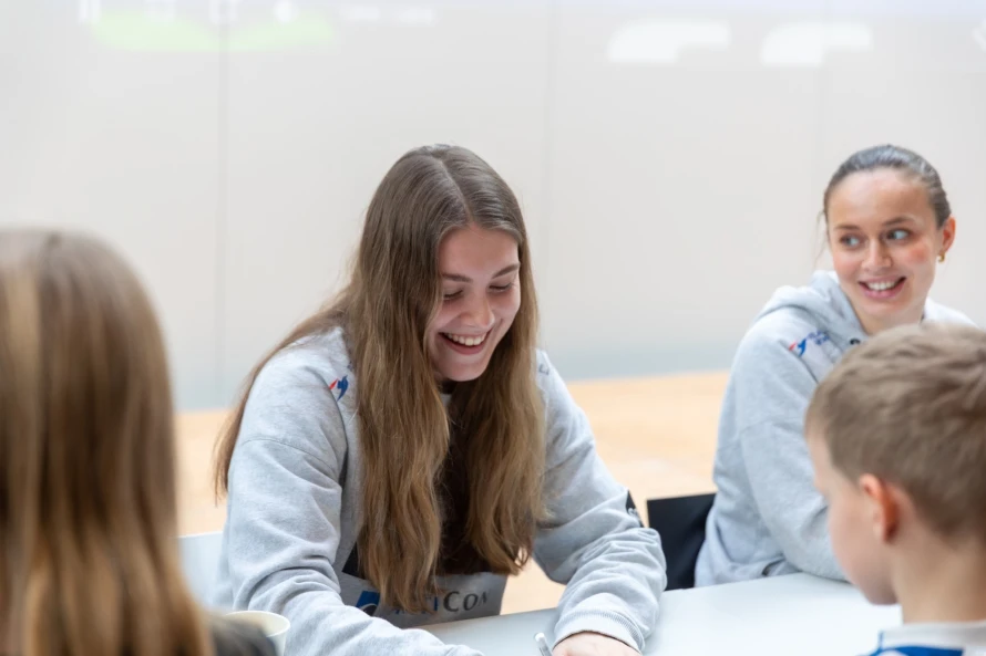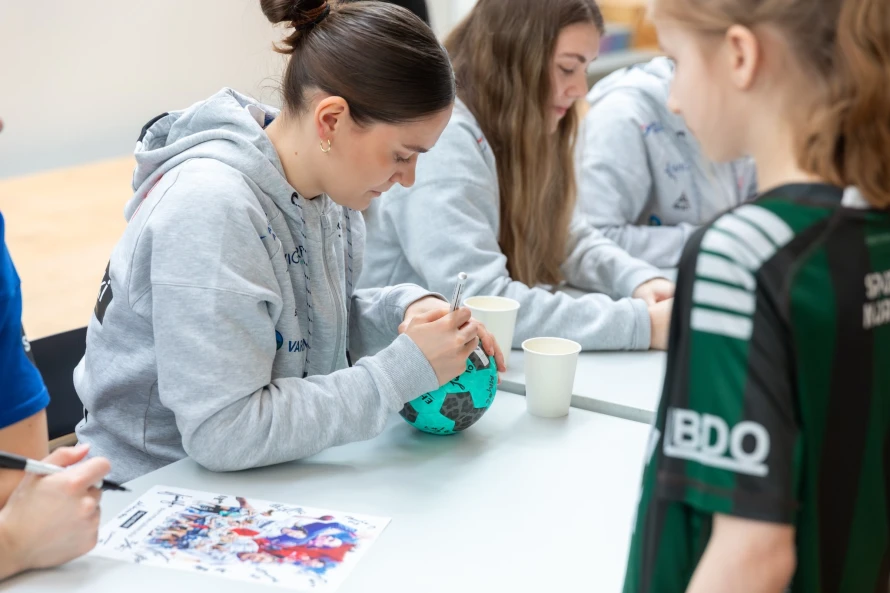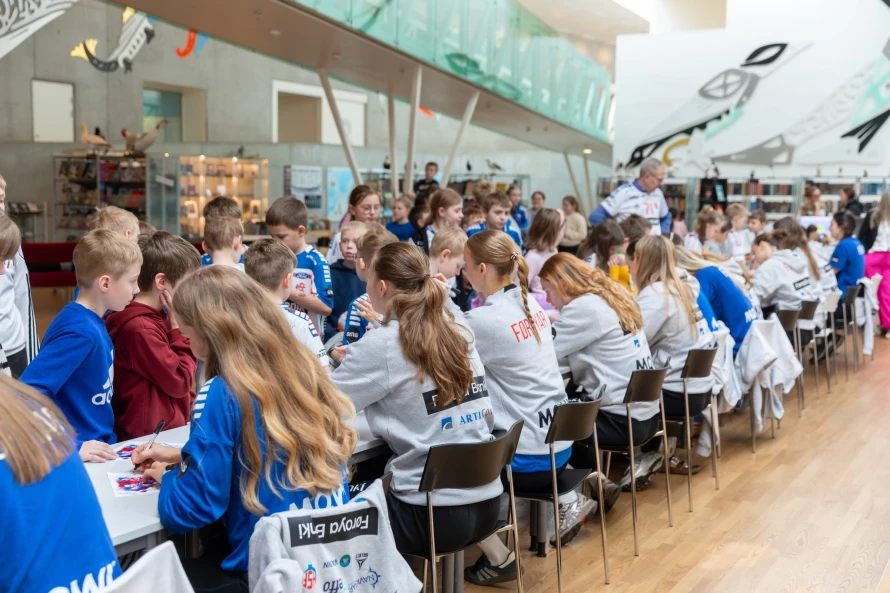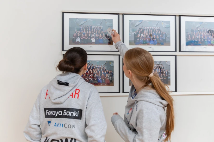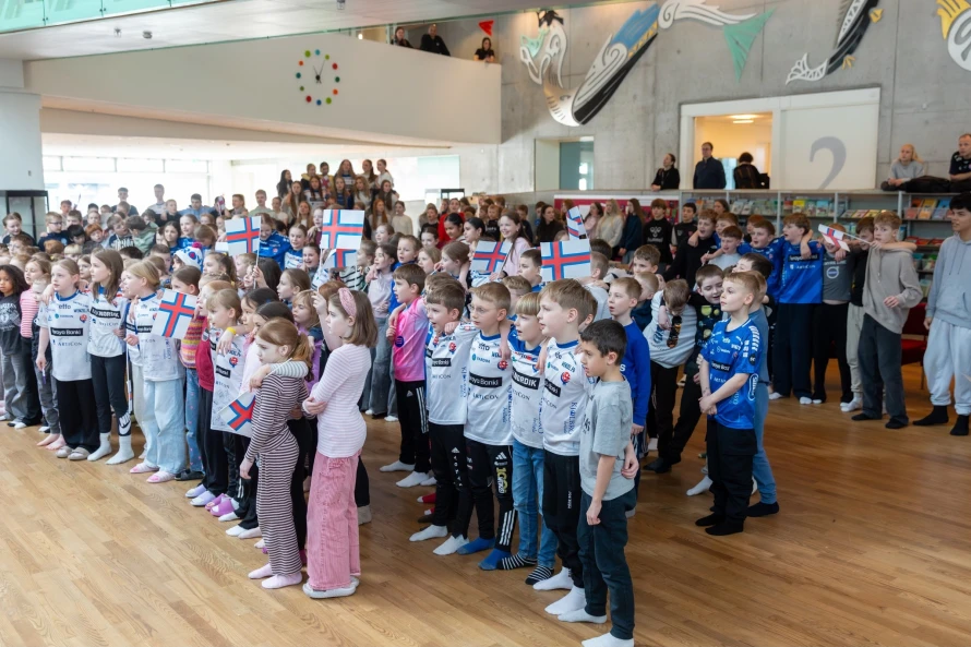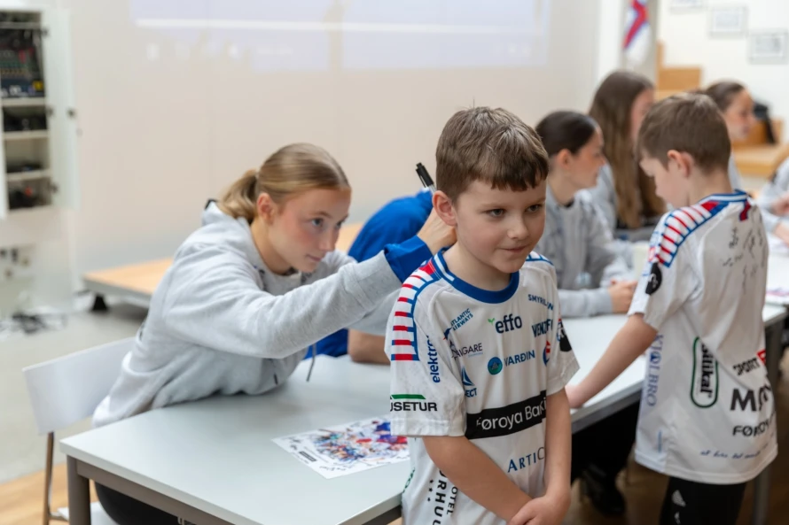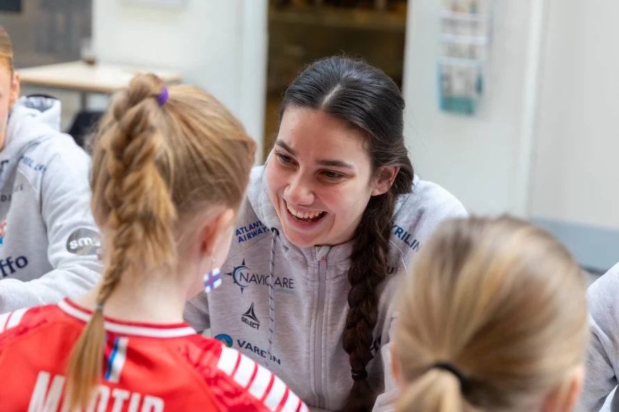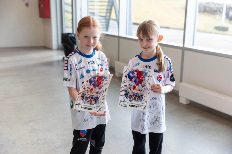 Á frídegnum hjá føroysku hondbóltskvinnunum í hesum landsliðsvindeyganum, vitjaðu tær ein fólkaskúla í Hoyvík, har fleiri teirra hava slitið sínar barnaskógvar.