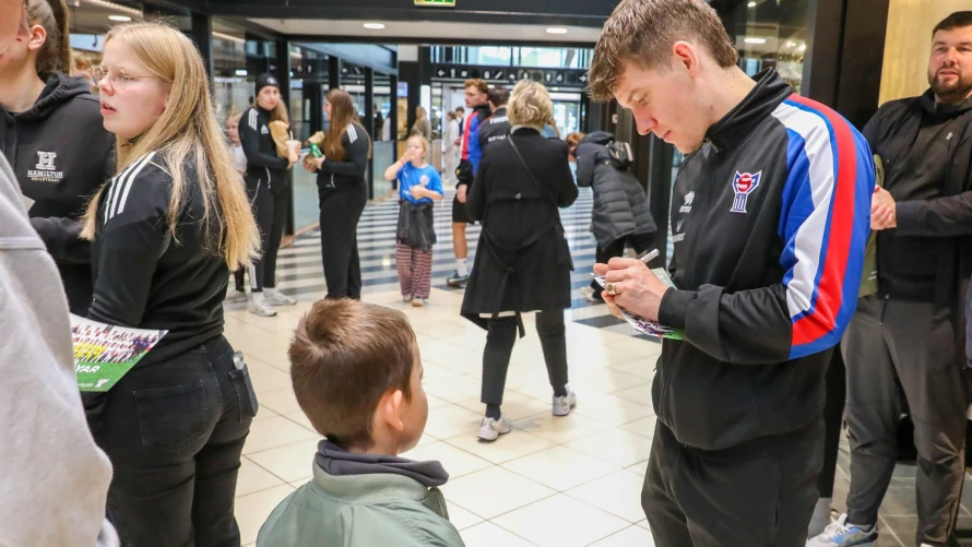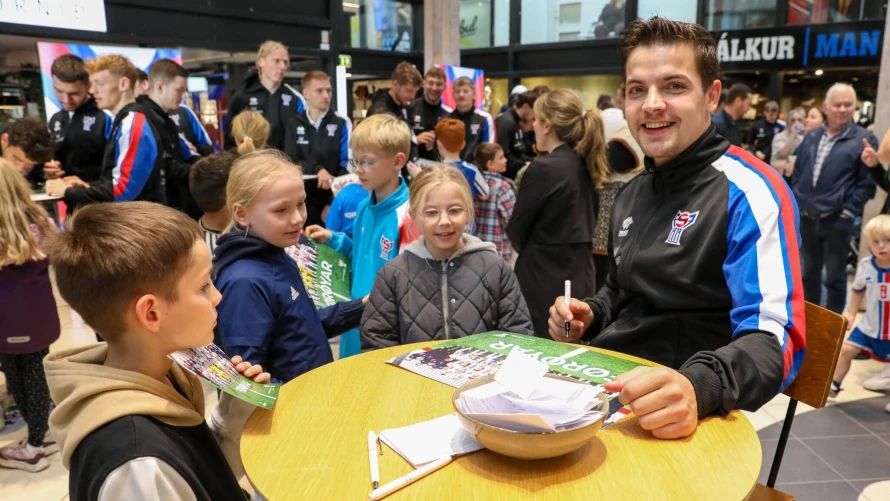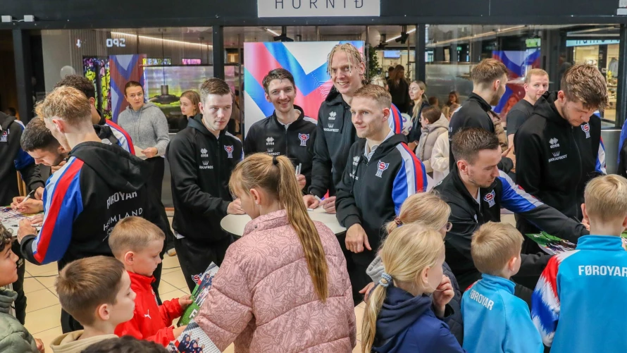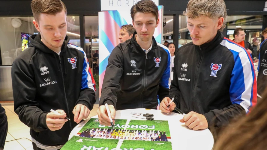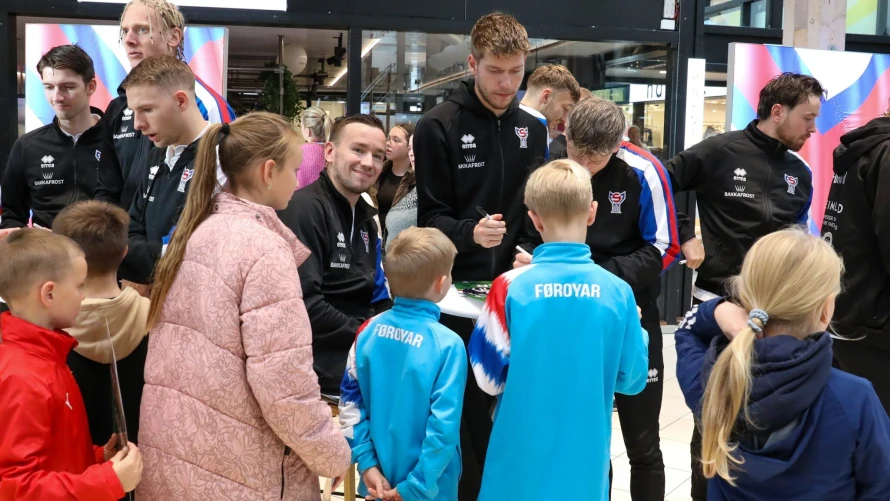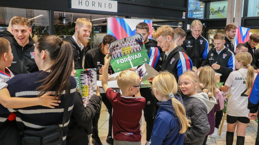Hópurin hevði sína seinastu venjing seinnapartin í gjár, og aftaná varð farið í SMS, har landsliðsspælararnir skrivaðu autografar.