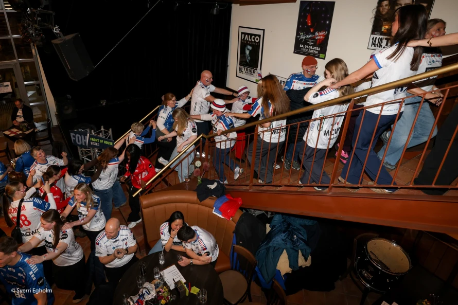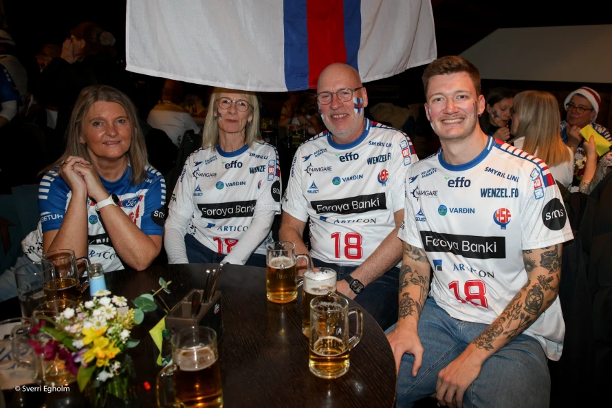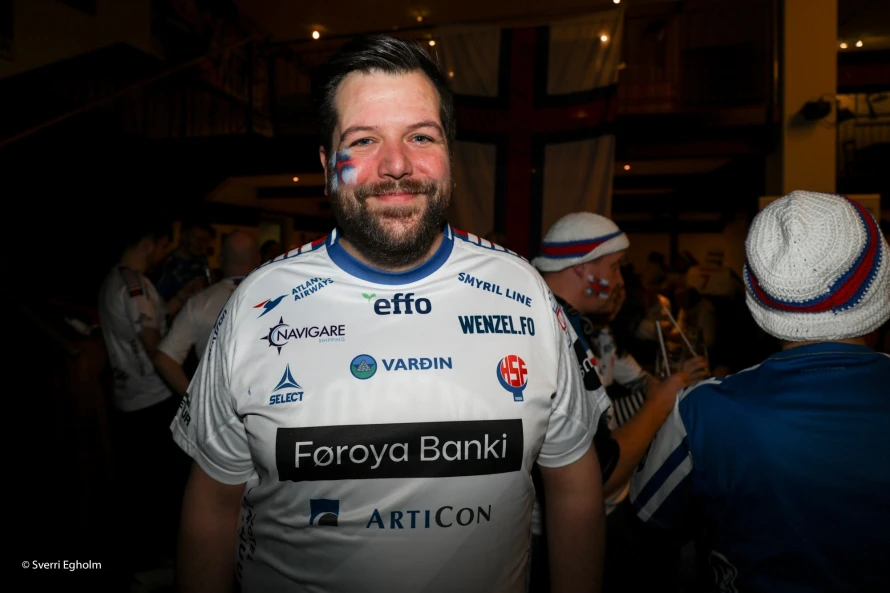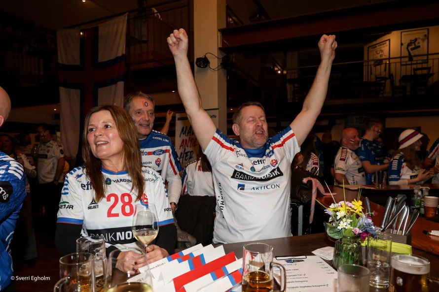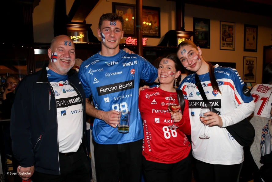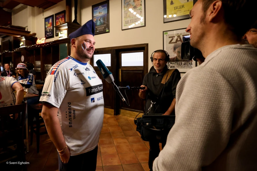 Plátuvendararnir, ið kalla seg DJ Wenzel syrgdu fyri tónleikinum, og rey/blá/hvítu føroyskir fjepparar syrgdu fyri stemninginum í mathøllini, sum liggur í tilknýti til høllina Trier Arena.