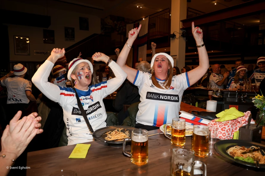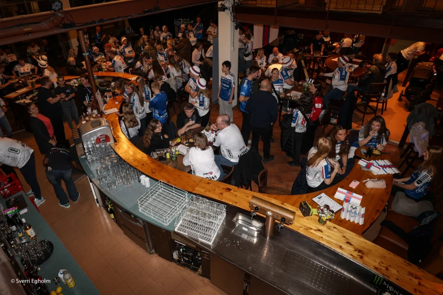 Lagið var gott - ikki minst tá sangurin "Sweet Caroline" tók at runga í hátalarunum. Tá var ein slanga skipað eftir gólvinum, sum rakk heilt upp á balkongina í høllinum. Vit loyva okkum at ivast í, um stemningurin nakrantíð hevur verið so góður á hesum stað fyrr.