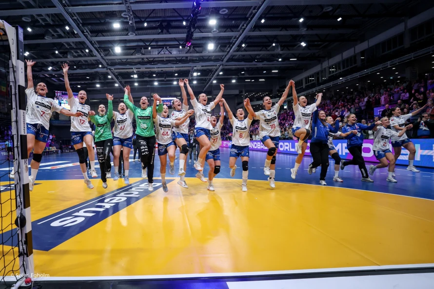 Tárini runnu í Trier í kvøld, tá kvinnulandsliðið vann 27-25 á Spania. Sí myndir frá ovfarakætinum í SWT Arena í Trier.
