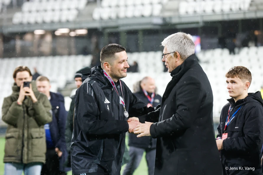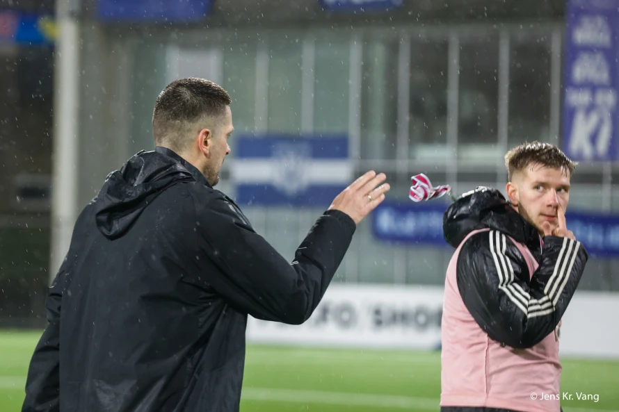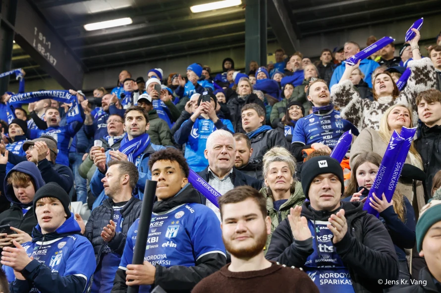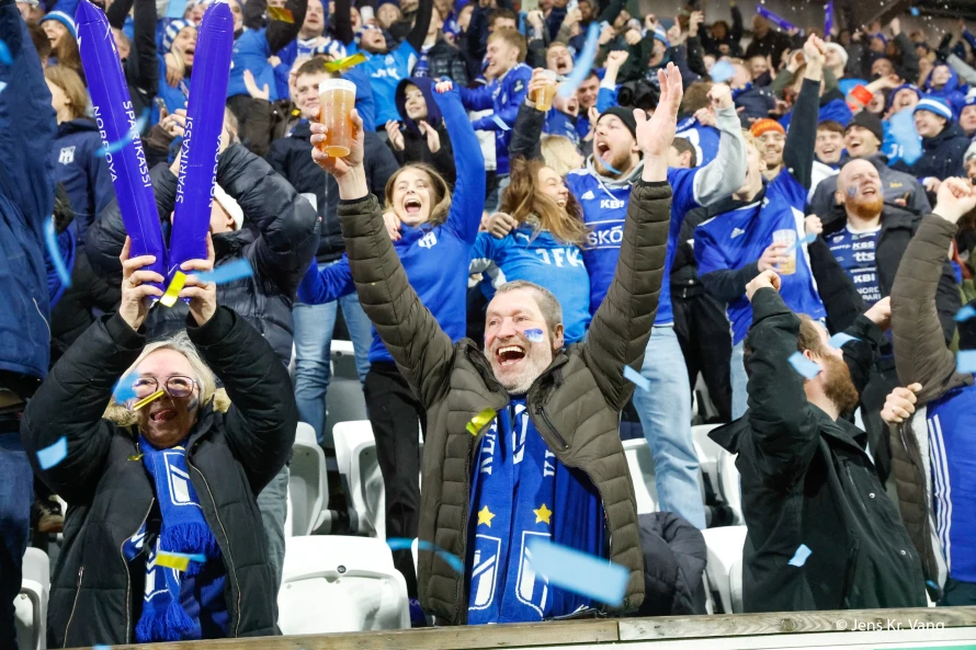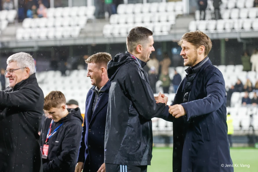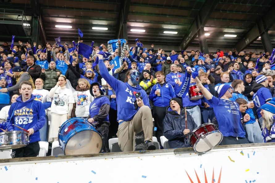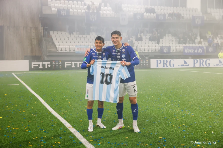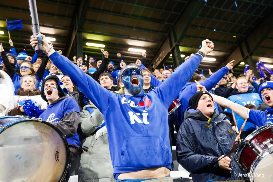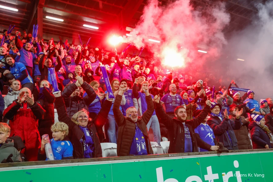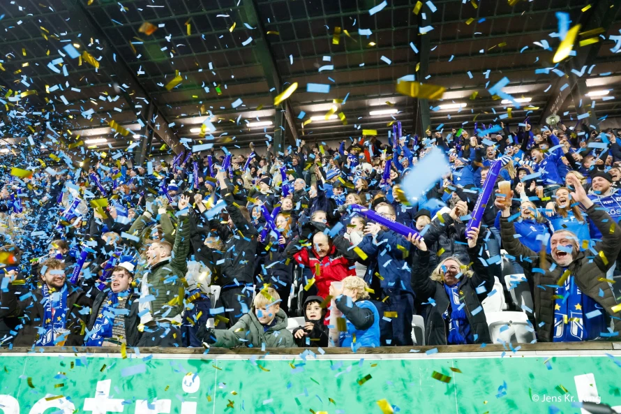 Spælarar, familja og øll rundanum KÍ í sigursrúsi eftir seinasta bríksl. Jákup Biskopstø Andreasen lyfti løgmanssteypið sum fyrsti KÍ'ari síðani 2016 - sí fagnaðarmyndirnar sum Jens Kr. Vang tók.