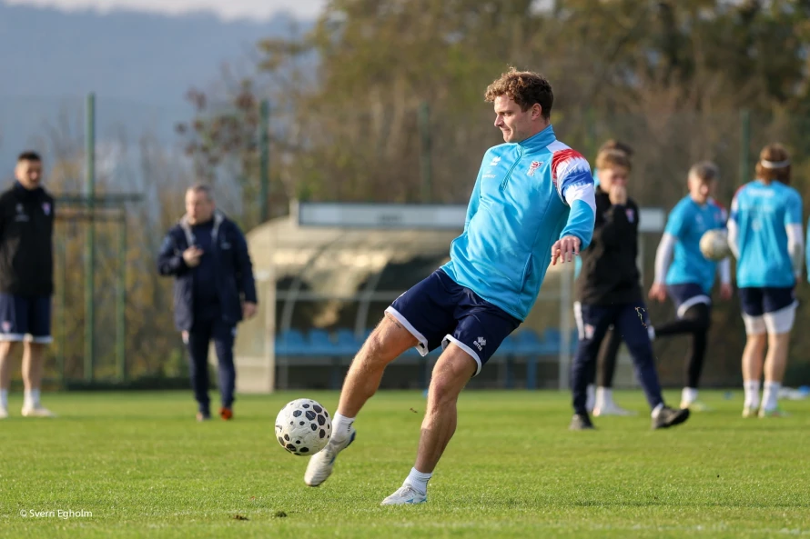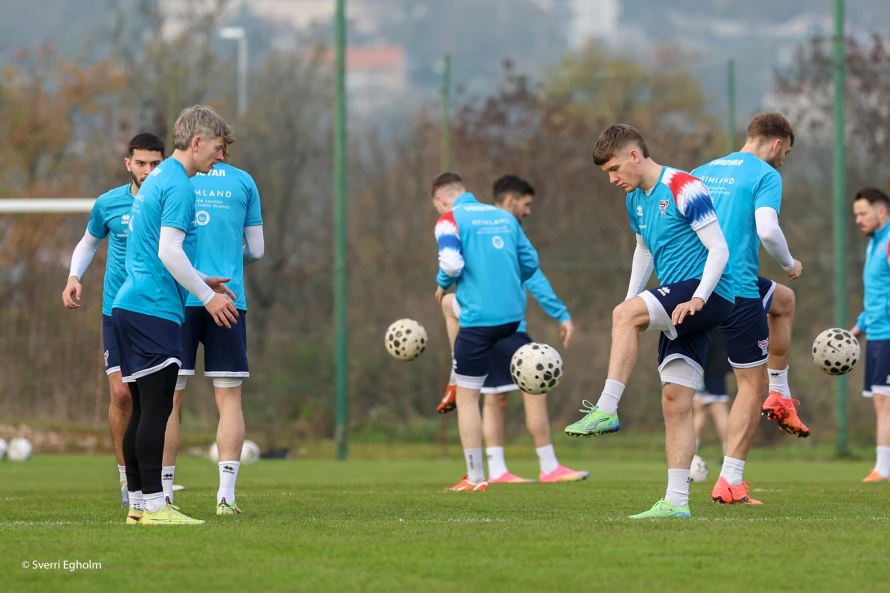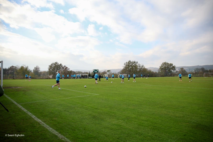 Búð verður nærhendis Rijeka, har dysturin eisini verður spældur. Seinnapartin var vant á einum venjingarvølli, MK Halubjan leikvøllinum, í frálíkum veðri. Sólin sá og ikki ein ond.