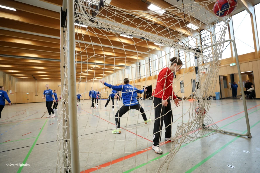 Føroysku hondbóltshetjurnar, kvinnulandsliðið, sum vann á Spania í gjárkvøldið, vandi í ein tíma í Alfons-Steinbach Halle í sunnara útjaðaranum av Trier. Ein góð venjing, sambært teimum sjálvum.