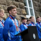 HB hevur víst seg sum ein hart arbeiðandi eind higartil í 2024. Her fegnast teir um sigursmálið hjá Bartal Wardum í sigrinum á KÍ sunnudagin (Mynd: Sverri Egholm)