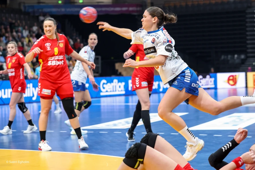 Føroyar taptu 32-27 móti Montenegro í fyrsta HM-endaspælsdystinum. Sí myndir úr SWT Arena í Trier.