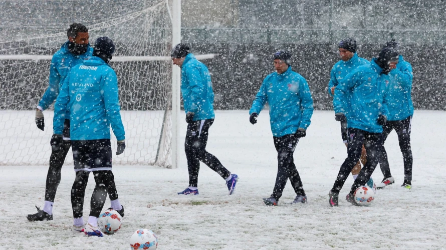 Í staðin fyri sól og hita í Emirríkjunum, skal føroyska fótbóltslandsliðið nú stríðast í vátakava í San Marino